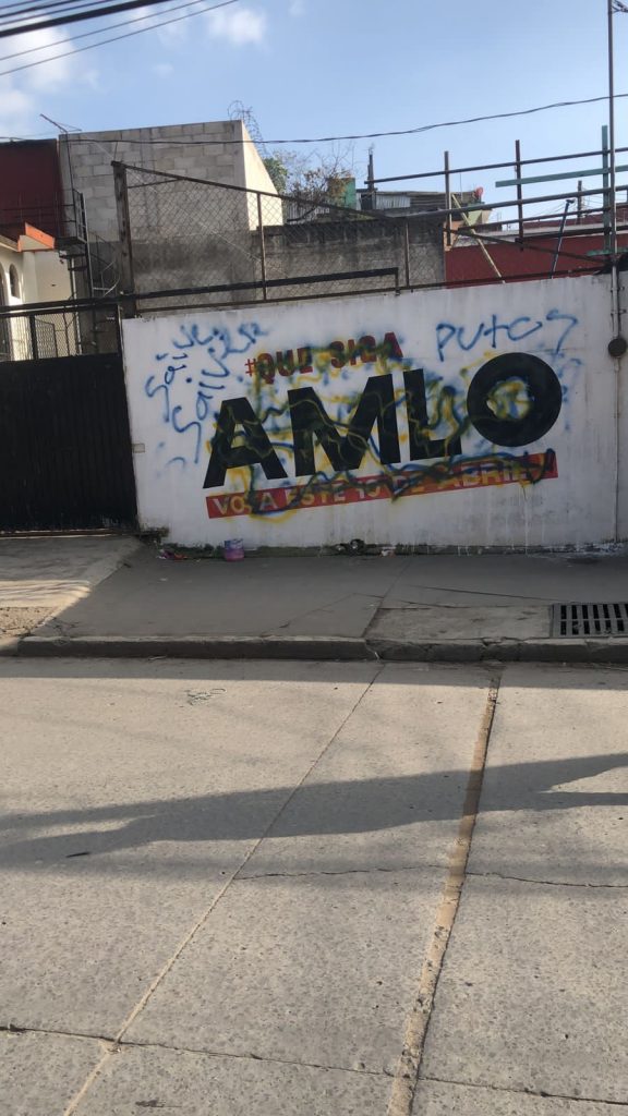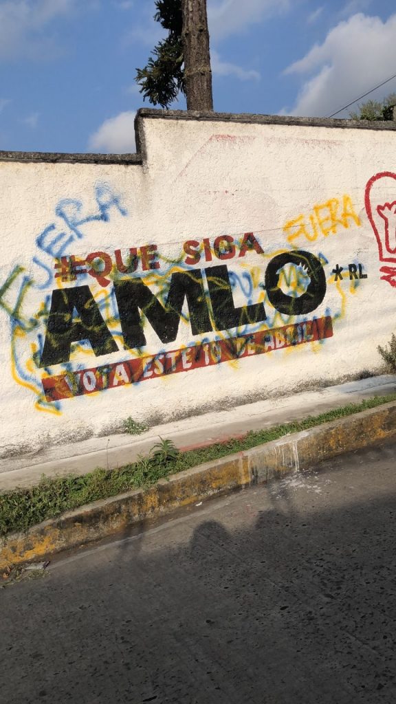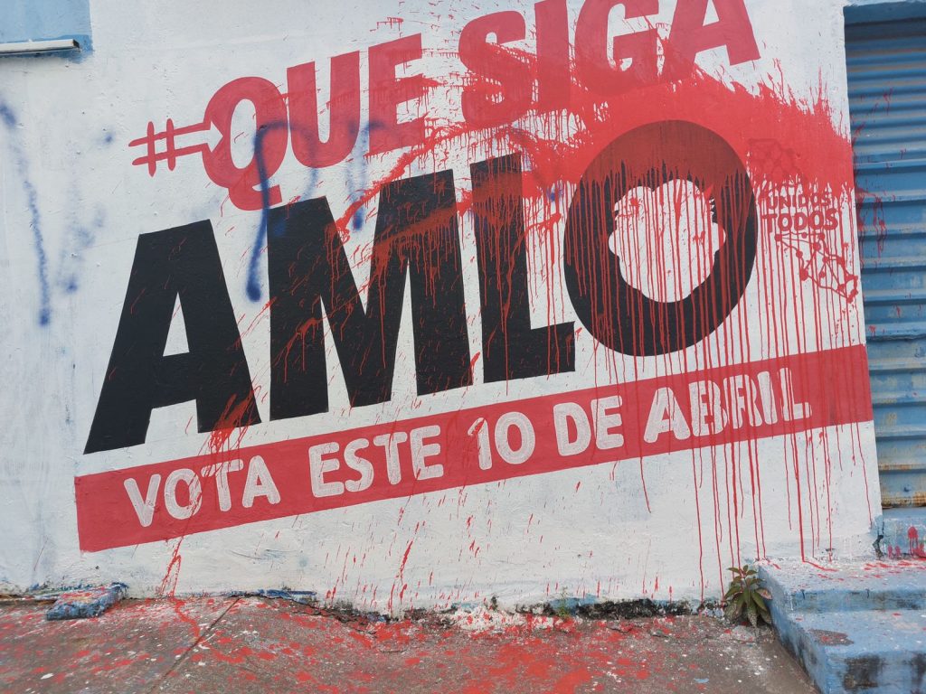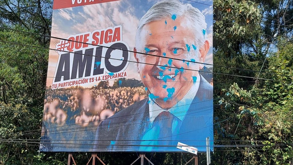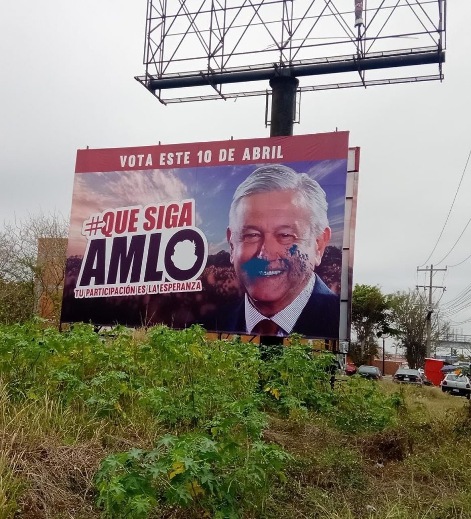 A través de redes sociales, ciudadanos denunciaron la “pinta” y “rayones” de espectaculares y bardas con la imagen de AMLO, en el marco de la consulta de revocación de mandato que se realizará el 10 de abril.