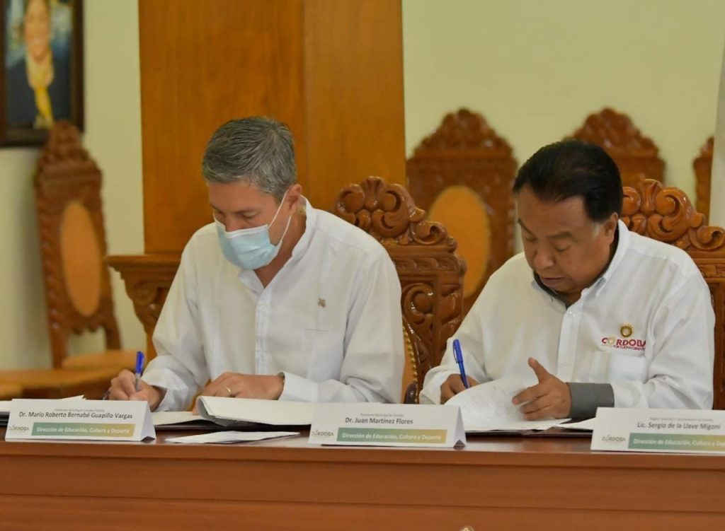 Córdoba, Ver., (30 de agosto de 2022). – Esta tarde, el Presidente Municipal, Juan Martínez Flores y el Vicerrector de la Universidad Veracruzana (UV) Córdoba-Orizaba, firmaron dos convenios de colaboración, lo que permitirá generar el desarrollo de la ciudad al ser incluido en proyectos educativos realizados por la máxima casa de estudios y la inclusión de los estudiantes en el gobierno municipal.