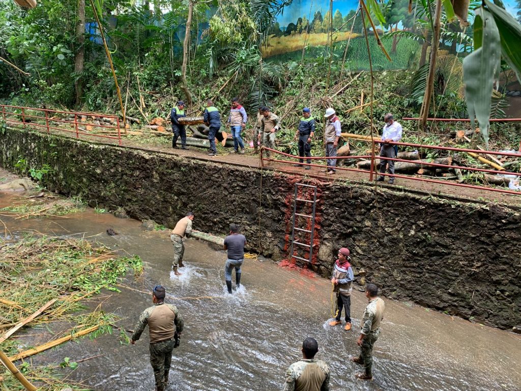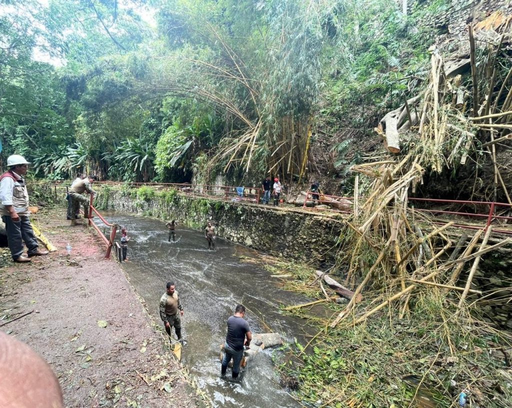«El árbol se desgajó porque estaba en una ladera, este día estamos liberando el cauce del río, ya que nos preocupaba que el mismo árbol hiciera una represa, y el agua al jalar el tronco afectara la estructura del puente de la calle 10», dijo el coordinador de la Unidad Municipal de Protección Civil, Jorge Tress Martínez.