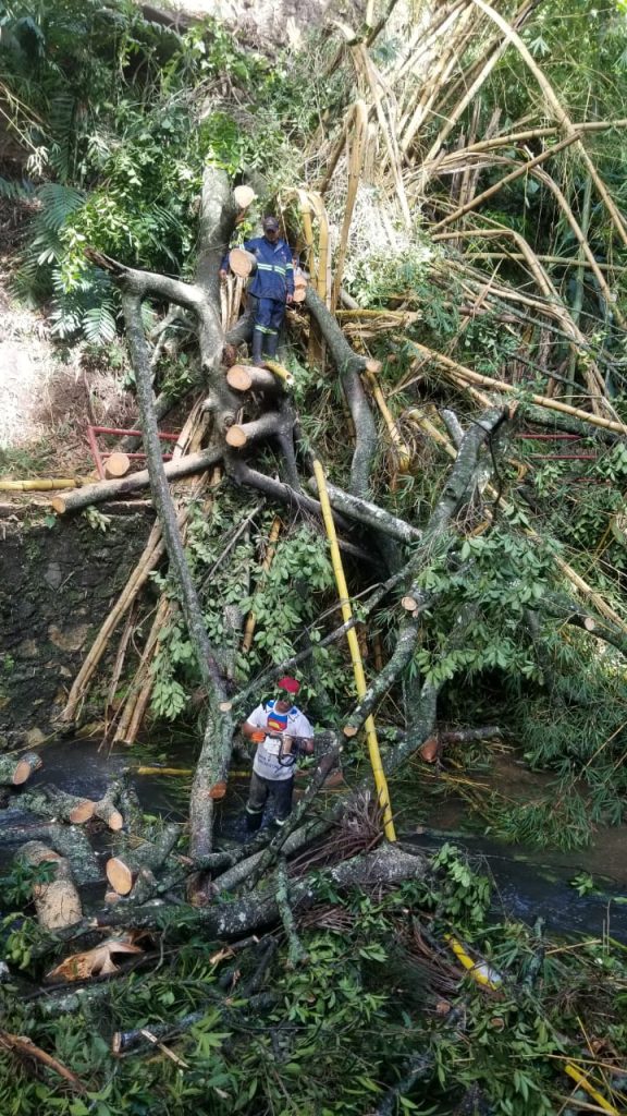 Las áreas de la Dirección de Protección Ciudadana y Movilidad (Policía y Tránsito Municipal), la Jefatura de Parques y Jardines y el departamento de Atención Ciudadana, realizaron los trabajos debido a que el tronco y las ramas impedían el paso del agua.