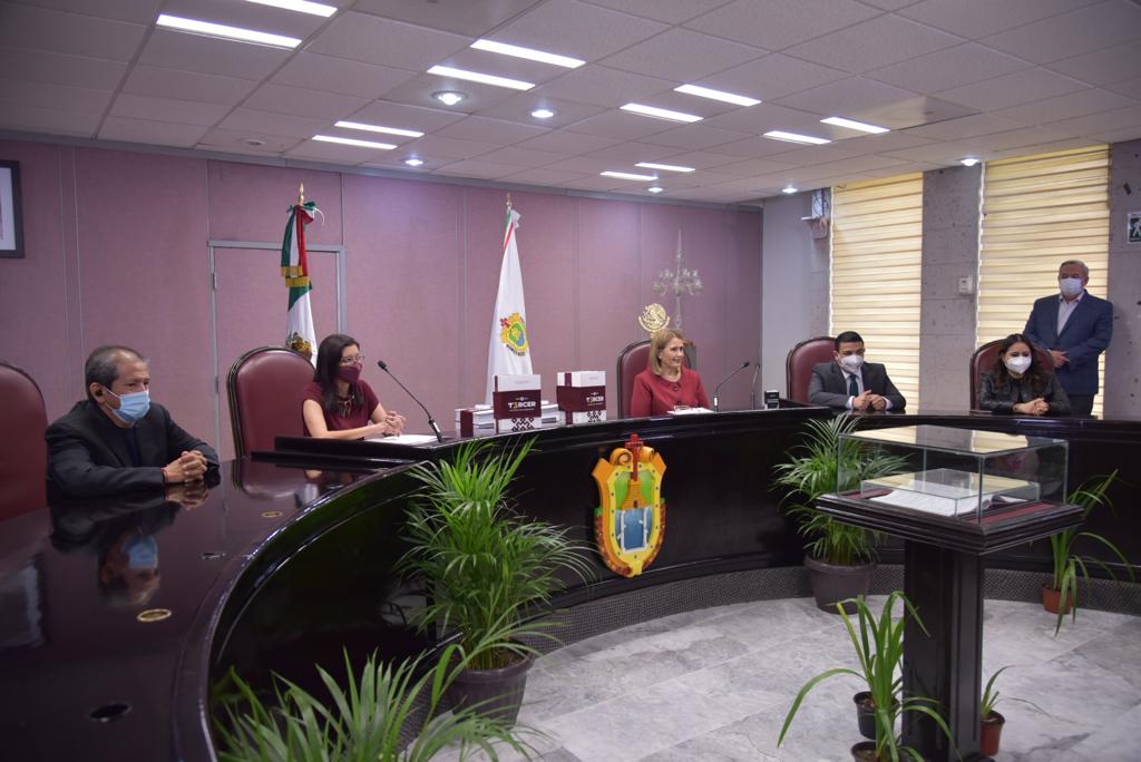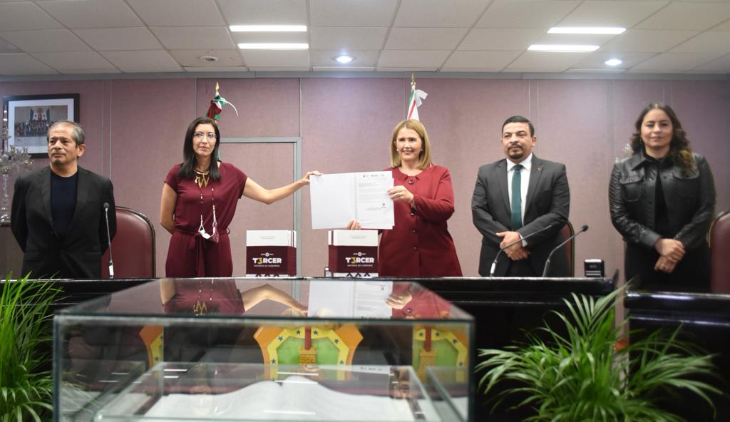 • Entrega el documento a la presidenta de la Mesa Directiva, diputada Cecilia Josefina Guevara Guembe, la jefa de la Oficina de Programa de Gobierno, Waltraud Martínez Olvera.