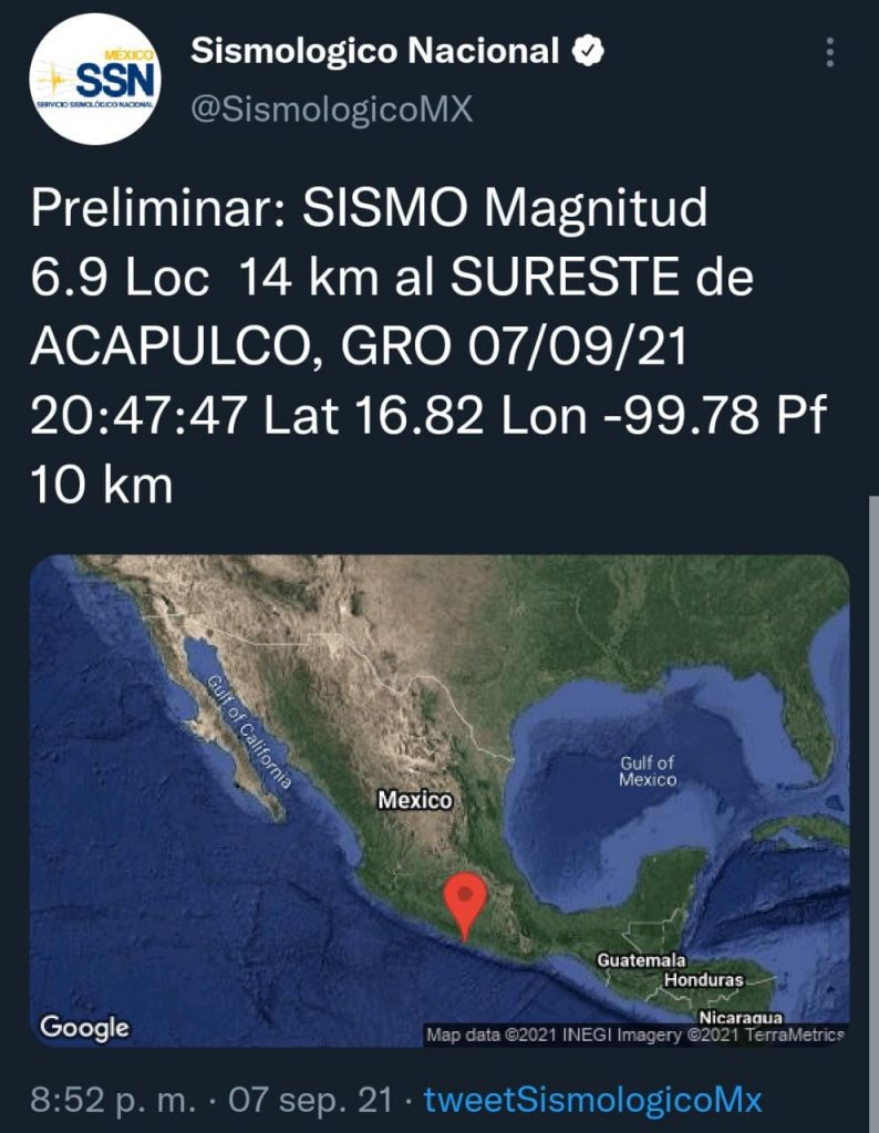 Reporte PRELIMINAR de sismo septiembre 7, 2021 343 Cuota FacebookTwitterPinterestWhatsApp Tags:Sismo J.D. Vance reconoce que desarmar a Hamás “llevará algo de tiempo” octubre 22, 2025 Operativo en Culiacán, Sinaloa, deja un abatido y seis más detenidos de Los Chapitos octubre 22, 2025 Se reporta de manera preliminar un sismo registrado a las 20:47 hrs a 14 km del sureste de Acapulco, Gro, con magnitud 6.9 y 10 km de profundidad, con percepción en varios puntos del estado de Veracruz. En breve se comparte mayor información. J.D. Vance reconoce que desarmar a Hamás “llevará algo de tiempo” Operativo en Culiacán, Sinaloa, deja un abatido y seis más detenidos de Los Chapitos Detectan plaga en la frontera México-EE.UU., ¿qué es la Osbornellus Salsus? Vacunas, medicamentos y atención médica garantizados a la población de la zona norte Veracruz sustituye seguros ineficaces por un Fideicomiso estatal sólido y transparente Detienen a ‘la Jefa’, novia del líder del Cártel de Tláhuac Artículo anteriorCon piedras, atacan a Justin Trudeau en acto de campaña en CanadáArtículo siguienteLeylah Fernandez, quién es la nueva promesa del tenis que solo tiene 19 años y ya le ganó a Naomi Osaka DEJA UNA RESPUESTA Cancelar respuesta Comentario: Por favor ingrese su comentario! Nombre:* Por favor ingrese su nombre aquí Correo electrónico:* ¡Has introducido una dirección de correo electrónico incorrecta! Por favor ingrese su dirección de correo electrónico aquí Sitio web: Guardar mi nombre, correo electrónico y sitio web en este navegador la próxima vez que comente.