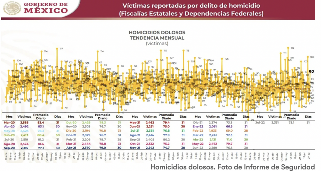 Con 2 mil 331 incidencias, julio se convirtió en el segundo mes con más homicidios dolosos en lo que va de 2022, detrás de mayo