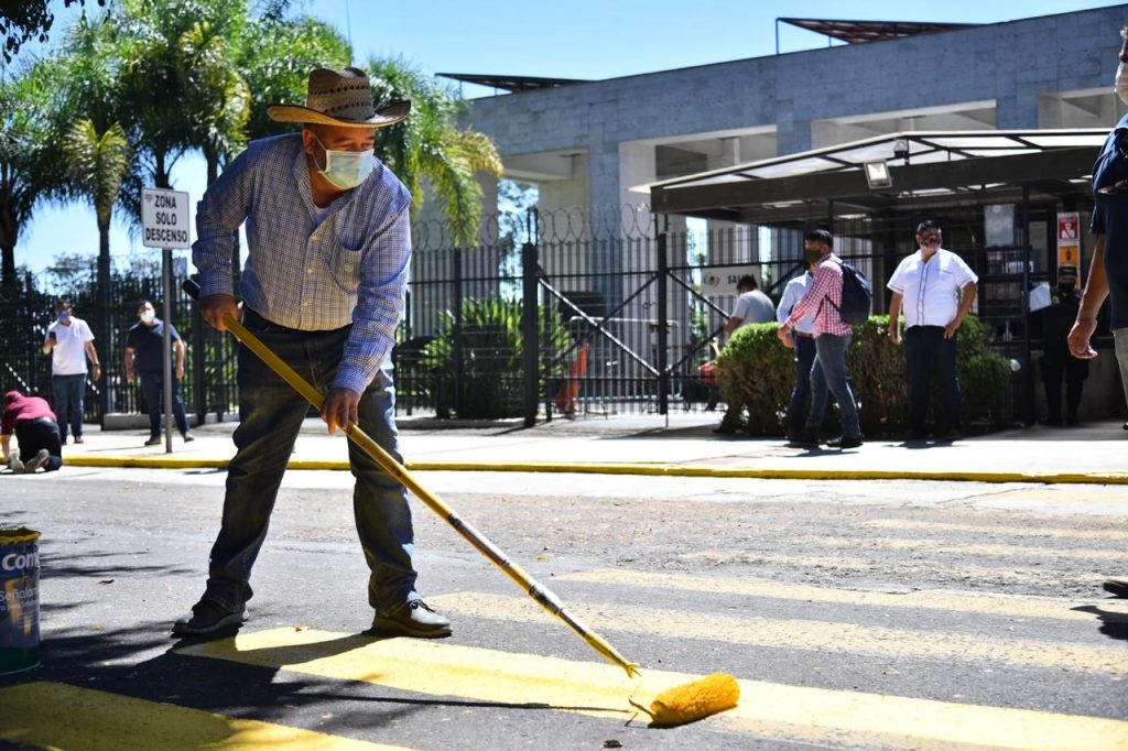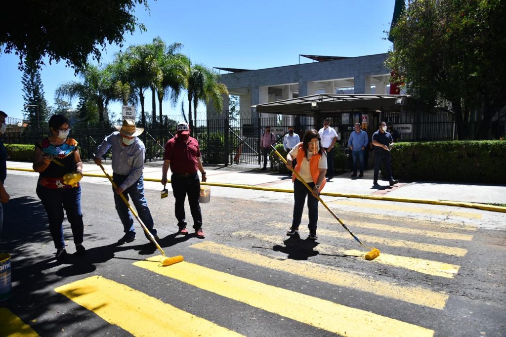 El Presidente de la Junta de Coordinación Política (Jucopo), diputado Juan Javier Gómez Cazarín, y sus homólogas Rosalinda Galindo Silva y Margarita Corro Mendoza, así como el secretario general del Congreso del Estado, Domingo Bahena Corbalá, y personal administrativo de esta Soberanía, participaron en una jornada de chapeo y pinta de guarniciones y señalamientos en las inmediaciones del Palacio Legislativo, como colaboración a las labores de orden, limpieza y embellecimiento que realizan Gobierno del Estado y el Ayuntamiento de Xalapa en las calles de esta ciudad.